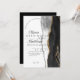Modern stylish black and white agate wedding invitation with silver a gold ink pour effect marble imitation (the gold is a digital effect, not real foil!) and modern calligraphy. Classy and elegant, simple and modern invitation.