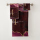 Modern Agate Geode Burgundy Gold Monogram Script Bath Towel Set