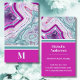 Chic Modern Monogram Initial Teal Magenta Stone Business Card. Agate crystals and geodes continue to be a favourite trend! This print features and up close image of a teal or turquoise and purple or magenta pink geode stone, complete with little crystals and white banding. Accented with vibrant colour blocking to give it a modern and trendy look. Add your initial to make it your own.