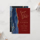 This elegant modern save the date card features a navy blue watercolor agate border trimmed with faux gold glitter. Easily customise the gold-coloured text on a burgundy red background. The reverse side features a matching navy blue and gold agate design.