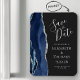 Modern Agate Navy Blue Silver Save the Date Magnet