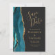 Modern Agate Teal Gold Dark Wedding Save the Date