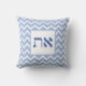 Modern Aleph Tav Blue White Zig Zag Pattern Cushion