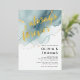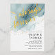 A beach-themed wedding invitation template that features a painted, abstract watercolor scene of a beach and waves with a gold ink pour effect (the gold is a digital effect, not real foil!) and modern calligraphy with the title "always and forever" in real gold foil. Classy and elegant, simple and modern, it is a lovely choice for a beach wedding during any season, for a modern couple.