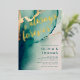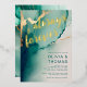 A beach-themed wedding invitation template that features a painted, abstract watercolor scene of a beach and waves with a gold ink pour effect (the gold is a digital effect, not real foil!) and modern calligraphy with the title "always and forever" in real gold foil. Classy and elegant, simple and modern, it is a lovely choice for a beach wedding during any season, for a modern couple.