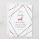 These contemporary wedding invitations feature a patriotic American colour scheme in red and blue geometric lines on white. Perfect for your Fourth of July wedding or any American wedding.