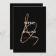 An elegant modern black minimalist monogram style wedding invitation with a stylised rose gold ampersand. With the wedding details on the reverse of the card.