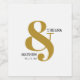 Wine labels with large rustic gold ampersand and names in black block text on a white background and small date field. Great for wedding and anniversary receptions.