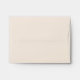 Custom A2 wedding RSVP / response card envelopes feature chic wedding return address custom text that can be personalised and a black and beige / warm white colour scheme. A pattern of black and beige horizontal stripes dresses up the inside of the envelope.