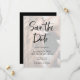 This ultra modern, on-trend photo wedding save the date card features your full-bleed photo, faded underneath an overlay, with a mix of trendy black handwritten script typography and slab serif text over it. An elegant and simple announcement that will stand out as soon as your guests open the envelope.