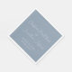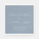 This modern and elegant event or wedding napkin features a simple dusty blue background with white text. The names of the couple are printed in a script font. The wedding date and location are printed below.
