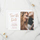 This ultra modern, on-trend photo wedding save the date card features a mix of trendy, faux rose gold look handwritten script typography and slab serif text. An elegant and simple announcement that will stand out as soon as your guests open the envelope.