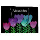 Modern and elegant design with pink, blue and purple flowers and green leaves on a black background. Personalise this pretty gift bag by clicking on the customise button.