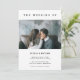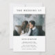 This simple and elegant wedding invitation features modern, black text on a clean, white background. There is room for one personal photo on the front.