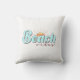 Featuring the words "Beach vibes" in sky blue bubble letters with a dark brown outline or shadow, this pillow captures the fun and playful spirit of the beach. The word "vibes" is written in lowercase dark brown cursive, adding a touch of elegance to the design.