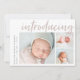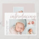 An elegant and modern birth announcement card featuring three photos (one square and two horizontal), with "introducing" in across the top in hand lettered brush script typography. Personalise with your baby's name and birth stats along the left side. Add a personal message to the back, along with an additional photo.