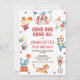 Cute circus themed birthday invitation suitable for a boy or girl featuring a circus tent, elephant, cat, seal, tiger, mouse, elephant and rabbit. This circus birthday invitation could be used for any age as all text is editable.