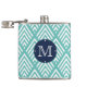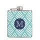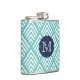 Modern Aqua and Navy Chevron Diamond Monogram Hip Flask