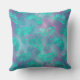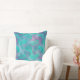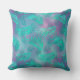 This pretty throw pillow features an aqua blue palm leaf pattern that seems to almost glow with colour! The various leaves are placed on a gradient pink violet purple background. Both sides of the pillow have the same design. This pillow makes an especially pretty patio accent.