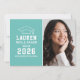 Announce your high school or college graduate in style with this graduation announcement and party invitation. Two-sided card features a senior portrait of the graduate with grad cap and simple and modern white typography design. Aqua or robin's egg blue background can be changed to a different colour with the "Customise It" feature, then Edit / Background to select another colour.