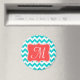 Modern Aqua Coral Chevron Zig Zag Stripe Fabric Print Pattern Monogram Initial Kitchen Magnet Personalised