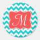 Modern Aqua Coral Chevron Monogram Initial Magnet