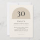 Warm neutral minimalist arch birthday invitation with modern typography. Age name date time location and RSVP are fully editable so you can customize for any 30th celebration and print or mail with ease.