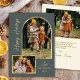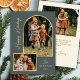 Elegant Gold Arch 3 Photo Green Happy Holidays Christmas Card. Celebrate the season in style with this elegant family photo Christmas card featuring a modern gold color arch-shaped photo frame. Personalize it with your favorite family photos, family name, and the year on dusty green or sage green background. The festive minimalist design is highlighted with elegant faux-gold color Happy Holidays calligraphy text, creating a warm and timeless look. The back showcases one photo and holiday message template with hand lettered name. A perfect holiday card to share with family and friends in winter holiday season.
