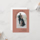 Beautiful simplicity and artistic boho style make this modern arch wedding save the date card pop with appeal. it features an arch shaped photo template on the front of the card to upload your desired photo. There is a text template on the front of the card to personalise with the bride and groom's names and planned wedding date. The back of this card has a sample message with additional details to personalise. Shown here with an earthy terra cotta background, this card is available in other colours as well.