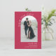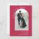 Beautiful simplicity and artistic boho style make this modern arch wedding save the date card pop with appeal. it features an arch shaped photo template on the front of the card to upload your desired photo. There is a text template on the front of the card to personalise with the bride and groom's names and planned wedding date. The back of this card has a sample message with additional details to personalise. Shown here with the popular new magenta background, this card is available in other colours as well.