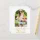 Modern Arch Photo Frame - Trendy Calligraphy Script - Photo Graduation Announcement Postcard - White Background with Gold Text - Gold Graduation Cap