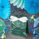 This modern design features a dark emerald green arch shape on a background of green watercolor agate trimmed with faux glitter. Personalise it with the names of the bride and groom and the wedding date in white.