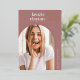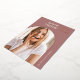 Modern photo graduation announcement features a vertical or portrait oriented photo in a unique arched layout, on a dusty rose pink background accented with rose gold foil trim. The graduate's name and graduation year appear at the top, with the school name at the lower right. Add a personal message to the back, along with an additional photo.