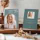 Modern photo graduation announcement features a vertical or portrait orientated photo in a unique arched layout, on a dusty sage green background accented with silver foil trim. The graduate's name and graduation year appear at the top, with the school name at the lower right. Add a personal message to the back, along with an additional photo.