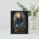 Modern Arch Photo Frame - Photo Graduation Announcement Postcard - Black Background with Gold Text - Gold Graduation Cap