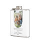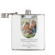The flask itself is fine. It’s a cheap flask, obviously bought in bulk, however am prepared to overlook that. Given that it is a personalized item, I would have liked to have seen gift boxing instead of the generic packaging. Terrible printing, and/or quality. It’s a cheap, tacky vinyl. It is not cut straight and is also applied in a way that it is overhanging the bottom, causing the glue to catch on items and it will eventually roll and tear, damaging the wrap.