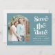 Teal save the date cards in a modern arch photo typography design. Mail to family and friends asking them to reserve your wedding date. Customise using the template. Contact me through the button below if you need assistance, I'd love to help.