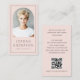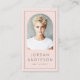 Modern, vertical, light blush pink or custom colour business cards with your arch shaped photo, name and title on the front, with a thin grey border along the edge of the card. Customisable template fields for your contact information, social media and QR code on the back. You can change background and font colours, move and resize elements with the design tool.
