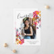 Modern Arch Pink Floral Photo White Graduation Announcement