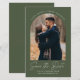 Save the Date Budget Wedding Announcement. Modern ultra-thin pen stroke casual script below arch framed photo. Completely versatile do-it-yourself style layout. Easily adjust the size, colours, style and placement of all elements. Note: The curved text should work with most names, but you can make adjustments or change it to standard text by clicking "Customise further."
