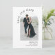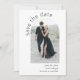 Beautiful simplicity and artistic boho style make this modern arch wedding save the date card pop with appeal. It features an arch shaped photo template on the front of the card to upload your desired photo. There is a text template on the front of the card to personalise with the bride and groom's names and planned wedding date. The back of this card has a sample message with additional details to personalise, along with a QR code template for making it easy for guests to view your wedding website. Shown here with a plain white background, this card is available in other colours as well.