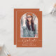 Modern Arch Photo Frame - Trendy Calligraphy Script - Photo Graduation Party Invitation Card - Terracotta Background