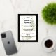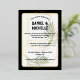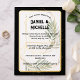 Celebrate your love with this luxurious arched wedding invitation featuring an elegant black background, soft olive foliage, and a modern geometric gold frame. The poetic quote and sophisticated typography make this design perfect for formal evening weddings or black-tie garden events. Fully customisable with your names, date, time, and location. A stunning choice for couples seeking style and meaning.