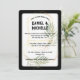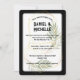 Celebrate your love with this luxurious arched wedding invitation featuring an elegant black background, soft olive foliage, and a modern geometric gold frame. The poetic quote and sophisticated typography make this design perfect for formal evening weddings or black-tie garden events. Fully customisable with your names, date, time, and location. A stunning choice for couples seeking style and meaning.