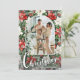 Modern Arched Photo on Poinsettias Christmas Holiday Card