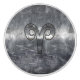 An Aries zodiac symbol in a grunge distressed silver metallic steel style background. A modern urban racy design for a great custom birthday gift idea.