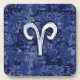 Modern Aries Zodiac Symbol Navy Blue Digital Camo Coaster