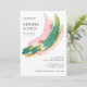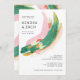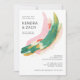 This contemporary style wedding invitation design is a miniature work of art with it's abstract paint strokes in a colourful combination of pink, green, red, gold, and beige. Lots of white space in the design give it a minimalist appeal. Personalise the text template with your wedding details.