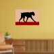 A minimalist modern art design of a silhouette of a boxer dog in black and red colors.