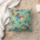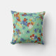 Modern Art Colourful Blue Red Flowers Sage Green Cushion